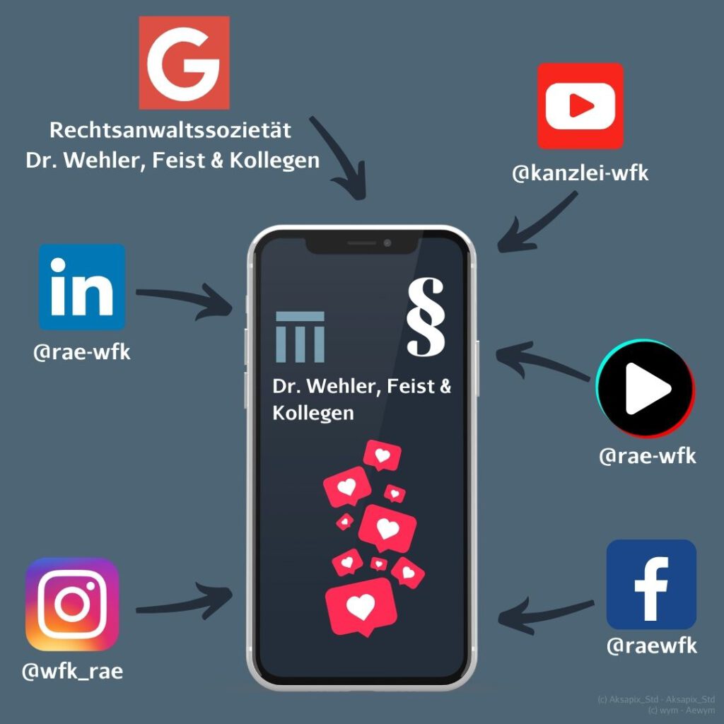 Natürlich sind wir auch in den Sozialen Medien vertreten. Beinah täglich wird den Fitnessstudios auf den Social-Media-Kanälen der Kanzlei interessanter rechtlicher Content geboten.